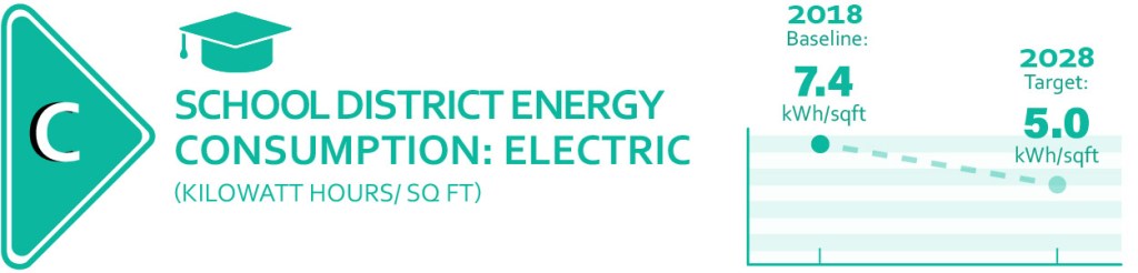 The Borough owns and operates dozens of facilities that total approximately 3.1 million square feet. In Fiscal Year 2018 over $9,771,000 was spent on utilities for school district and other buildings. Older facilities generally consume more energy for heating and lighting. It’s important to note that schools and non‐school buildings have very different energy requirements. While schools shut down in the summer months, and provide mainly classroom space, other Borough facilities operate year round and house energy‐intensive systems, such as pools and ice rinks. Due to this, a disparity in energy intensity per square foot is expected. Nonetheless, improvement in energy efficiency is possible for all building types and services. To account for the addition of new facilities and removal of old facilities, the overall Energy Use Index (EUI) is used as an indicator. The EUI is calculated by dividing total Borough energy consumption by the total square footage of operational facilities and then by Heating Degree Days (HDD). Reducing heat energy and electricity usage will reduce Borough expenses and CO2e emissions.